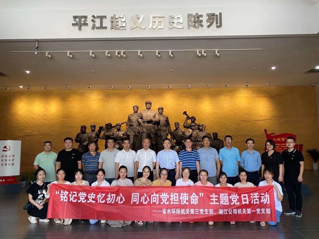 7月27日,在建黨101周年之際,為銘記黨史初心,感受信仰力量,勇?lián)聲r(shí)代使命,湘江公司機(jī)關(guān)第一黨支部和省水環(huán)所機(jī)關(guān)第三黨支部聯(lián)合開展主題黨日活動(dòng),前往平江湘鄂贛革命根據(jù)地紀(jì)念館和平江起義紀(jì)念館,重溫..